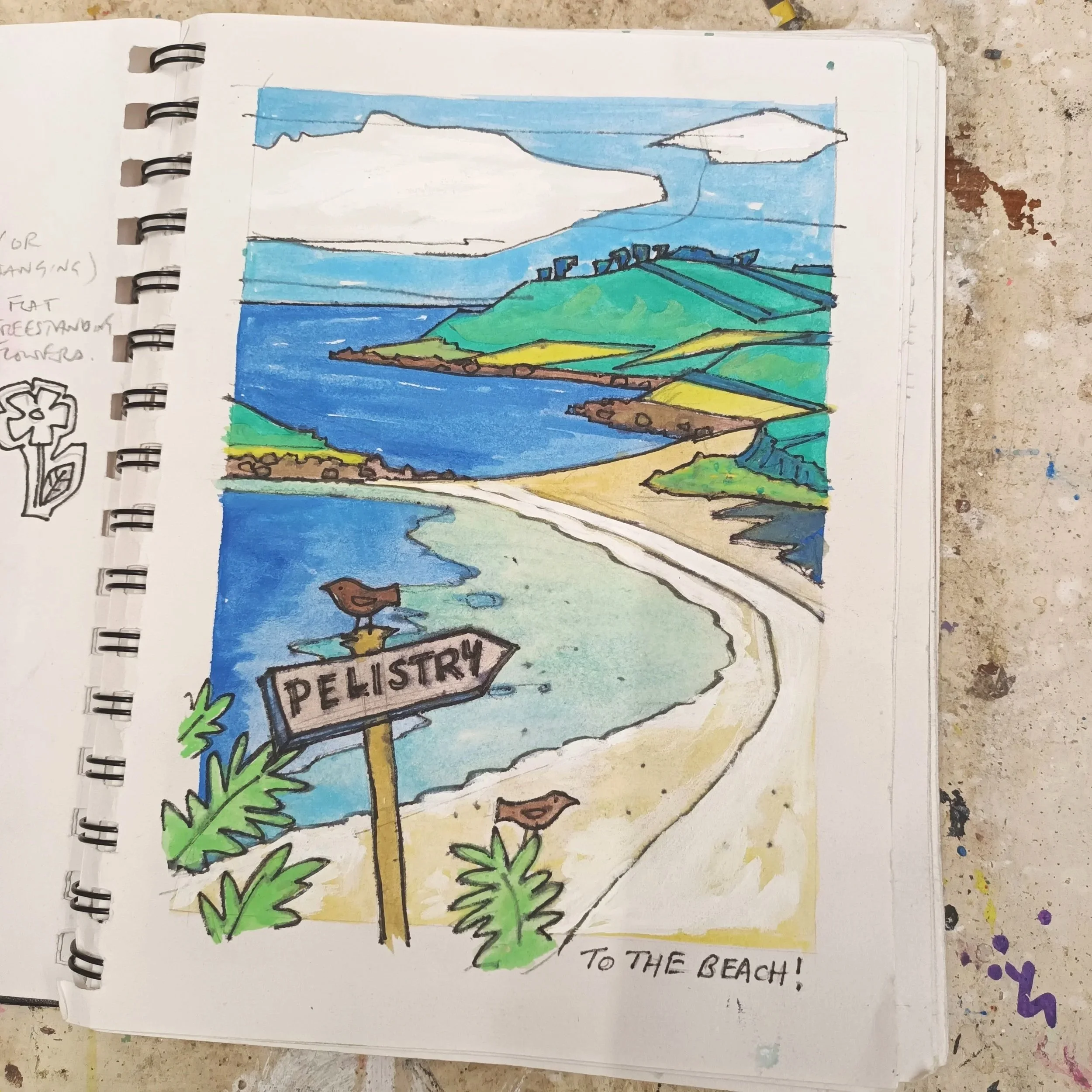 My work sits part way between painting and something illustrative or cartoon-like. From early in my career I shied away from the fact that the thing that supplemented my art practice was moonlighting as a caricaturist entertainer. Caricaturing was fun, I visited fancy venues, mixed with celebrities and often got a free dinner! I could observe a persons character instantly and capture them on the page in three minutes to make them laugh - a fantastic skill, however my fine art education whispered in my ear that I wasn’t being a “proper artist”.